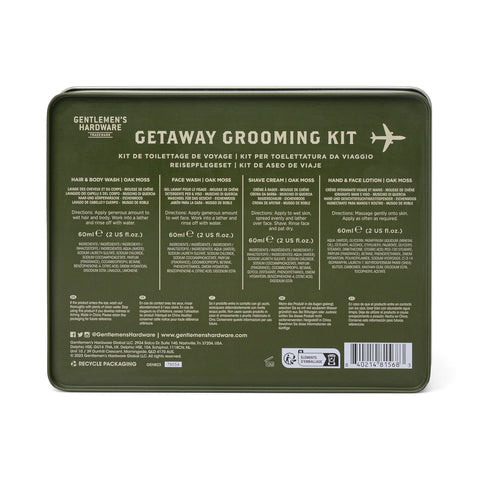 Equipped with 3-in-1 Wash, Shaving Cream, Face Wash, and Hand & Face Lotion, this compact kit has everything you need to look and feel your best. With vegan-friendly ingredients and an intoxicating Oak Moss scent, this kit makes the perfect gift or travel accessory, stored neatly in a reusable tin.